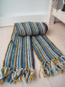 - Mønster/Pattern: 300m op på hæklenål 4½mm og så ellers bare hækle frem og tilbage med fastmasker, hvor jeg skiftede garn for hver række, til bredden er tilfredsstillende / 300 sts looped with crochet needle 4½mm and then just single crochet back and forth changing yarn for each row until the width was satisfying.