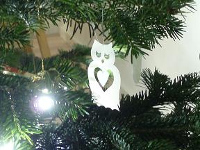Most of the home made ornaments are by me. I’ve made a lot of the owls (previously shown here), and a lot of hearths, both the traditionally braided and some paper cuts. I have made a template for the owls and the cut hearts (in two sizes), which can be downloaded from the link below. There still is a little time left to make some more ornaments for the Christmas tree. Enjoy.