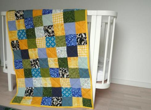 Jeg er blevet færdig med min allerførste quilt. Den er til MM og han har da også snakket om “mit tæppe”, men jeg må indrømme, at jeg kom til at trumfe mig selv, for samme dag var hans girafsengetøj også blevet færdigt, og det var efter hans mening noget mere spændende. Og så er det jo kun mor her, der ved at sengetøjet kun tog en brøkdel af tiden at lave og ikke involverede stejle læringskurver og ømme fingre.