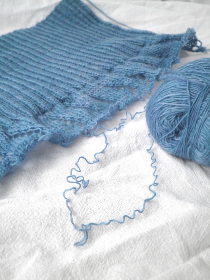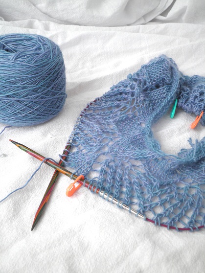 Det er dog ikke noget at være ked af på dens vejne, for den er genopstået i ny form, til stor glæde for både den og mig. Det nye mønster er Cecilia (Ravelry link) fra den nye bog “Mere feminin strik” af Lene Holme Samsøe. Mønsteret og garnet og pindene spiller sammen til en harmoni af himmelske dimmensioner!