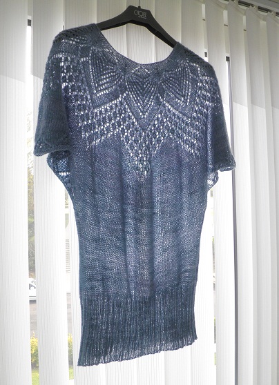 Ikke alle mine projekter er ligeså gamle som trøjen til Magen eller bare det nys færdigstrikkede sjal. En gang imellem bliver ting færdige på langt kortere tid. Denne lille, lette, lune bluse er sådan en “hurtig” ting. Jeg startede den d. 18. august og gjorde den færdig i dag blot to måneder senere. Den er blevet helt perfekt, og jeg glæder mig til, at den kan komme i brug, for eksempel henover en lille fiks kjolesag.