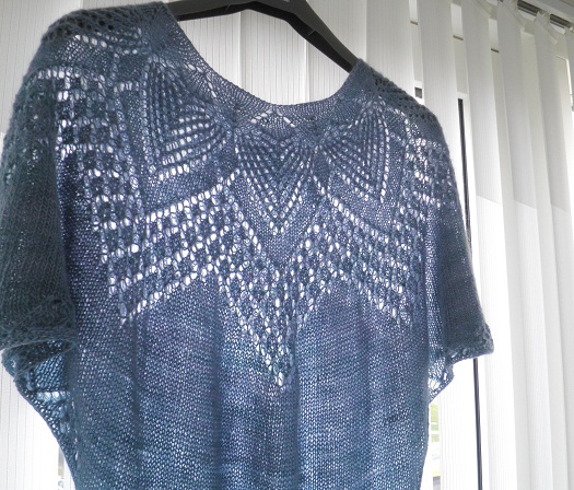 Not all my projects are as old on the needles as the sweater for the Mate or the newly finished shawl. Once in a while the projects enjoy a much swifter progression to finishdom. This little, light and airy blouse is just such a “quick” thing. I started it on August 18th and finished it today, just two months later. It is just perfect and I really look forward to beginning to use it, for example over a little pretty dress.