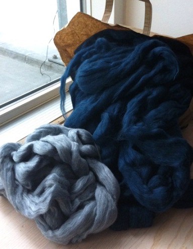 No fair without purchases, and as it was the sheep breeders’ fair, some spinning fibre did make it home with me. I felt the urge for some self pampering, so I bought some luxury fibre. To be precise, 700 g of silk/merino (20/80), 600 g of the dark blue and 100 g of the grey. It is incredibly soft and beautiful, and I look forward to spinning it.