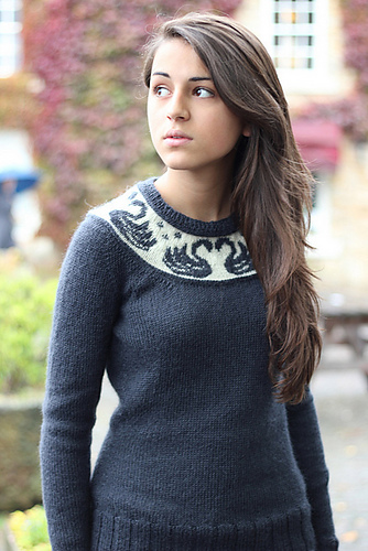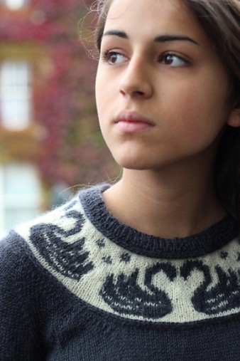 I rarely buy fibre with a definite project in mind. I usually just spin for my own pleasure and figure out what to do with the yarn afterwards (often I gift it to others). But this time is different. I have long term plans with this fibre. First I’m going to spin it to a 2-ply yarn, and then I’m going to knit it into the beautiful Wetwang (Ravelry link) by Ann Kingstone . The pullover is also part of her newest (and very good) book “Born & Bred“. Ann has also been sweet enough to allow me to use the pretty pictures of Wetwang below.