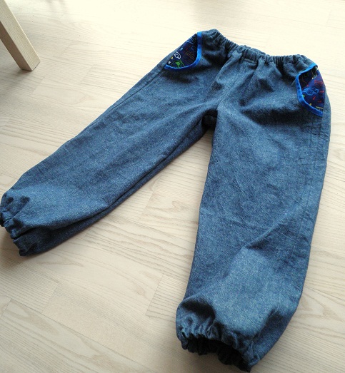 My middle nephew turned 3 yesterday. I decided that I wanted to give him something crafted and hopefully cool, so I made another pair of baggy pants for him, which hopefully will suit the energy bomb that he is. They are pretty boyish with emergency vechicles in the pockets, and I hope he’ll like them. They are sewn in a slightly heavy cotton and the pattern is the usual from MiniKrea.