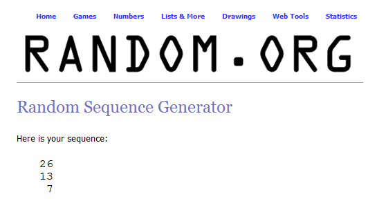 Bedre sent end aldrig! Jeg trak tre numre mellem 1 og 46 for et øjeblik siden, og random.org gav mig følgende sekvens.