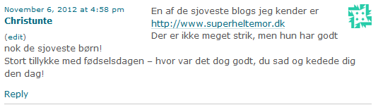 Nummer 13 er Christunte, der har vundet garn og opskrift på Gefion sokkerne. Christunte anbefalende Superheltemors blog, som jeg også holder meget af selv.