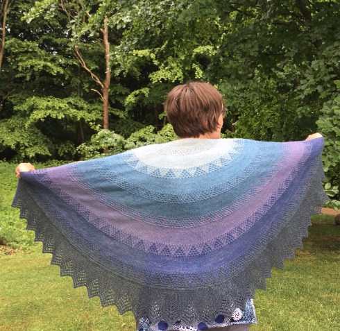 Men nu er de helt færdige – og hold da fast, hvor synes jeg de er skønne begge to. Men jeg er vild med begge sjaler – de er smukke og luftige og lækre – og selvom jeg nu kun har et tilbage (jeg har givet det indigofarvede blå til min mor), så var de stadig en fornøjelse at strikke.