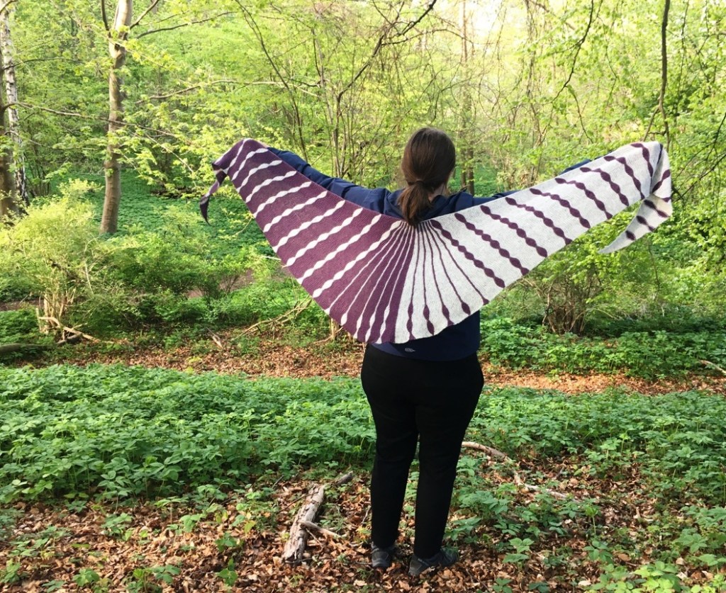 Glæden ved at tage det nyvaskede, bløde og lækre sjal i brug er en stor, og jeg blev mindet om, hvor dejligt det er at strikke. Mellemstykkerne med retriller er perfekt til tv-strik eller transportture og bølgerne eller “nerverne” sidder hurtigt i fingrene.