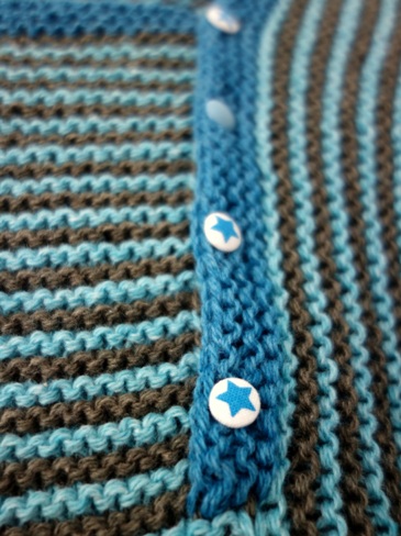 Vel hjemme igen fik trøjen knapper og er nu klar til at komme i brug – om et års tid eller to! MM er nemlig vokset temmelig meget i mellemtiden (han var den oprindelige tiltænkte ejer), og LB er ikke stor nok endnu. Men det er vel heller ikke så skidt at have en fin ny trøje klar i fløjen til når LB på et tidspunkt rammer størrelse 5 år. Indtil da må jeg også vente med at tage billeder af trøjen med et passende barnefyld.