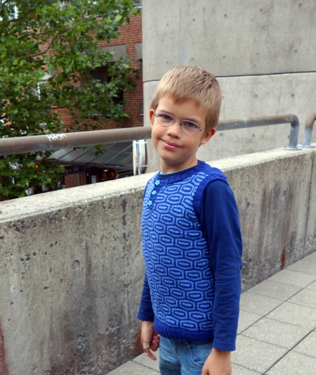 Back to the vest. The pattern is from CaMaRose by Trine Bertelsen – Drengevest med strukturmønster. I knit a size 6 yrs in the width and size 9 yrs in the length, which ended up fitting my long and slim boy perfectly now – it’s wonderful when that happens.