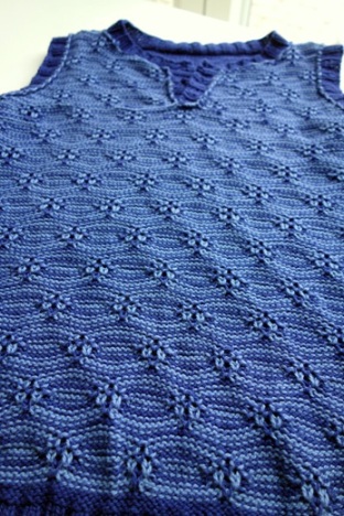 One souvenir from last year’s Fanø Knitting Festival was the yarn and pattern for a vest for MM. I cast on while on the festival, but was wise enough (perhaps I’ve finally learned something) to cast on for a quite big size. Now, shortly before this year’s festival, the vest is ready for use, so I haven’t even been a year knitting this – which almost approaches lightning speed.