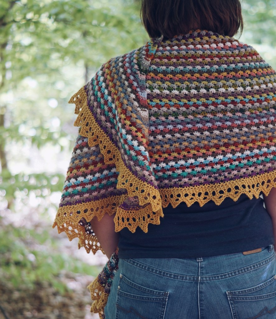 It is a true scrappy project and stash-buster – not that it takes THAT much yarn (about 350-400 g for a decent size shawl) – but there is endless opportunity for variations, and you can use even the really small scraps in the first rows of the shawl.