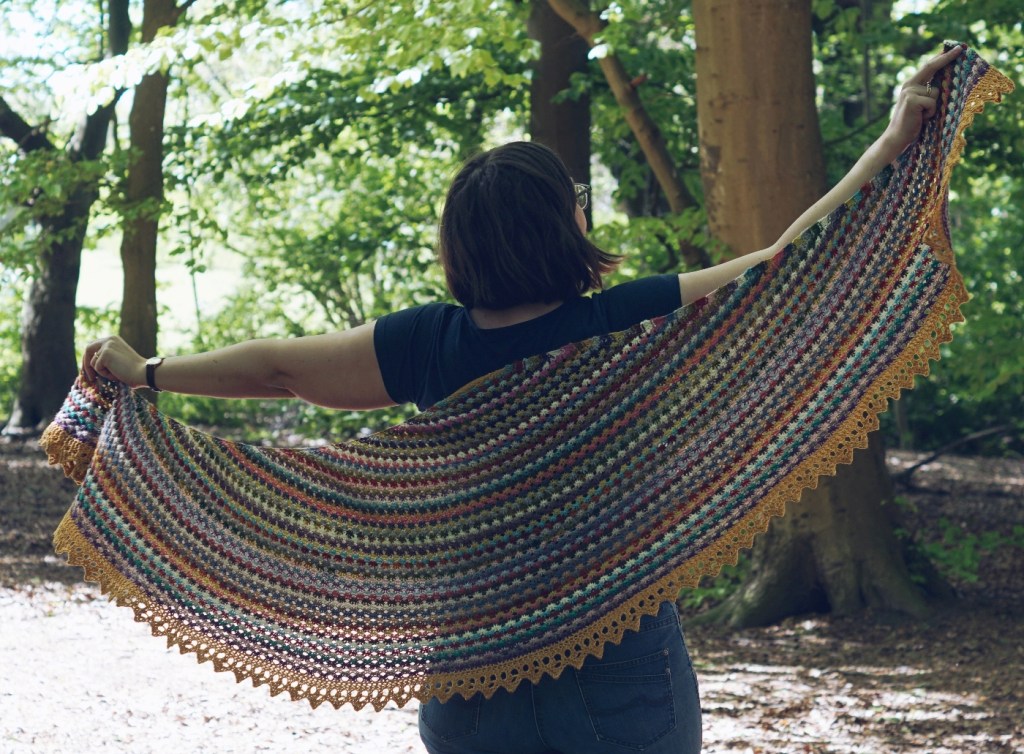 The pattern is also a bit special – you get a lot of the info from the workshop on how to use the value of the colours to make a shawl with a balanced finished look.