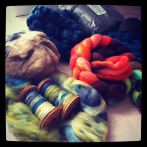 Det næste spindeprojekt er allerede godt i gang. Jeg spinder nogle af de fibre, jeg købte på sidste års julemarked, til et rigtigt luksusgarn … en blanding af merino og cashmere, der bliver tvundet sammen med en tyndere tråd ren silke!